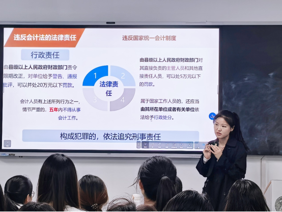 课程教学中,熊梦圆老师大胆创新,综合运用了“翻转课堂”与情景剧展示等多元化教学方法。她通过精心设计的教学环节,引导学生从被动接受转向主动探究,尤其在情景剧展示环节,学生们角色代入感强,现场反响热烈,有效深化了对经济法律条文的理解与应用能力,充分展现了“学生为主体、教师为主导”的教学理念,课堂气氛活跃,教学效果显著。